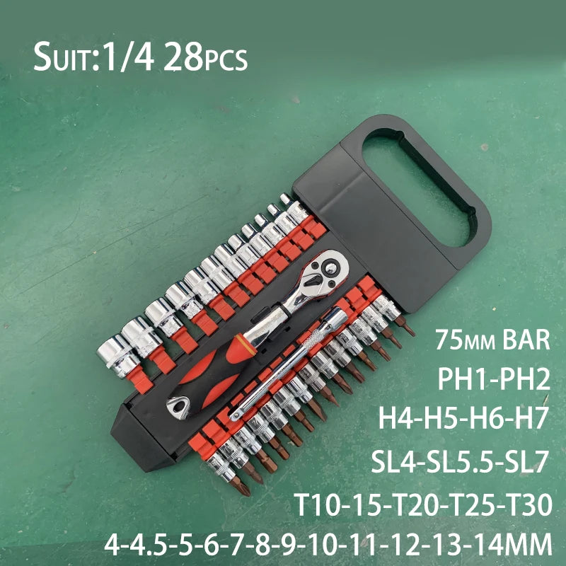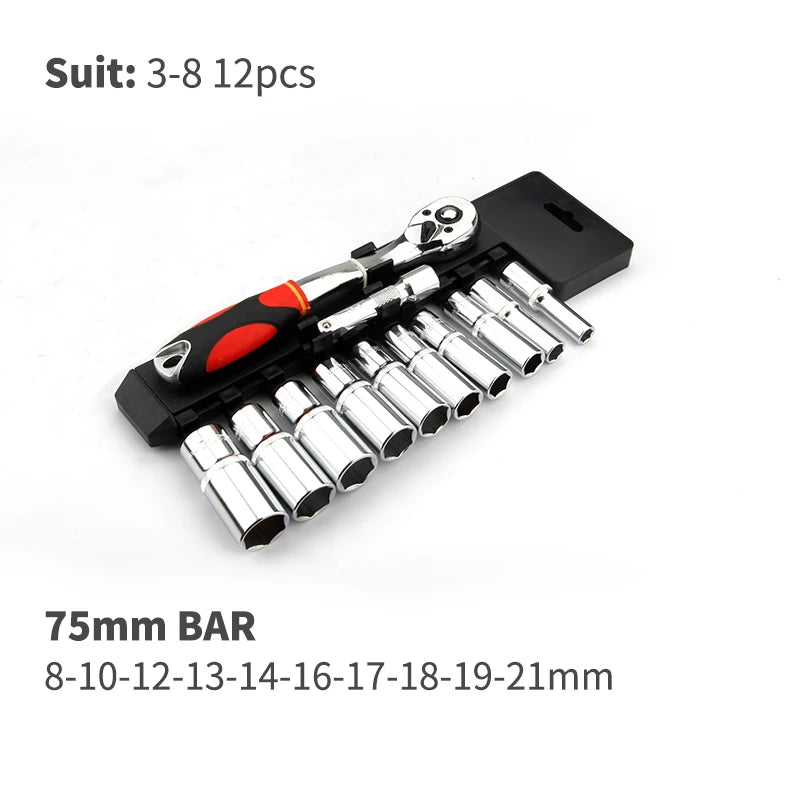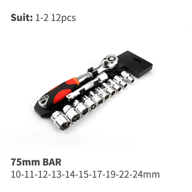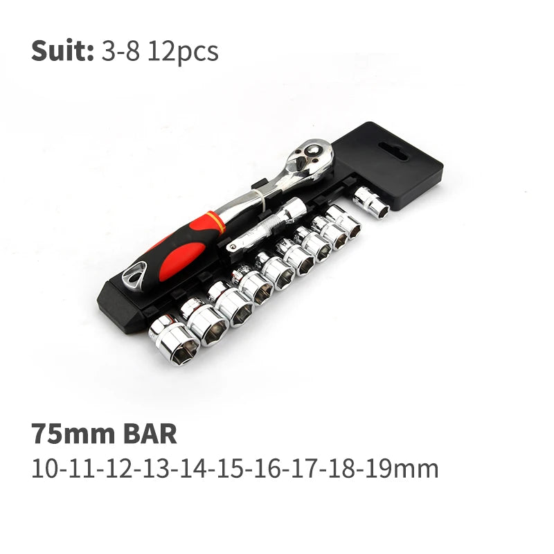 Conjunto de Ferramentas com Catraca Reversível de Liberação Rápida CRV2'' Drive 6.35mm 10mm 12.5mm
