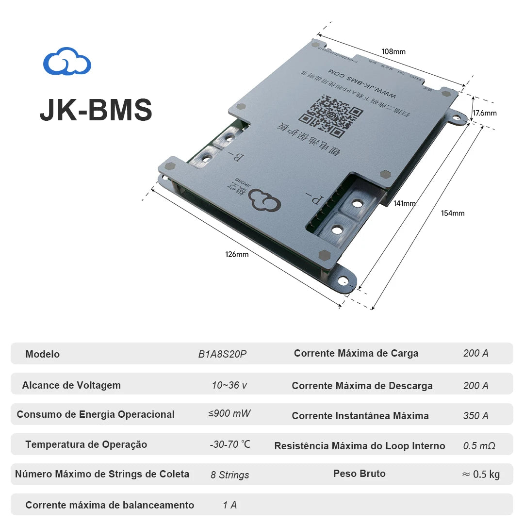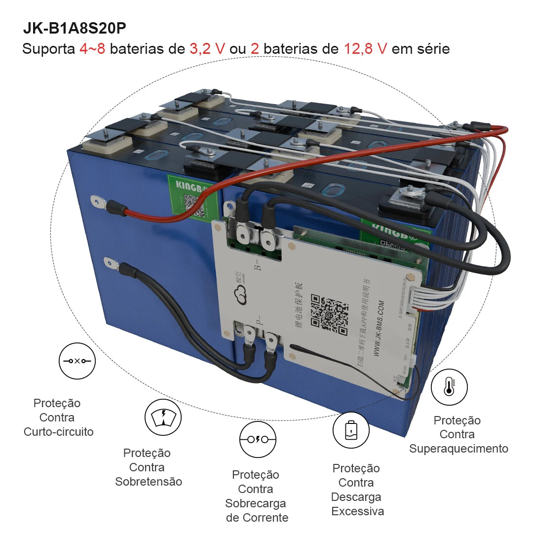 【Do Brasil】Smart BMS JK-B1A8S20P 4S~8S 12V 24V Kingbo Power Battery With 2A Active Balabce on Sale