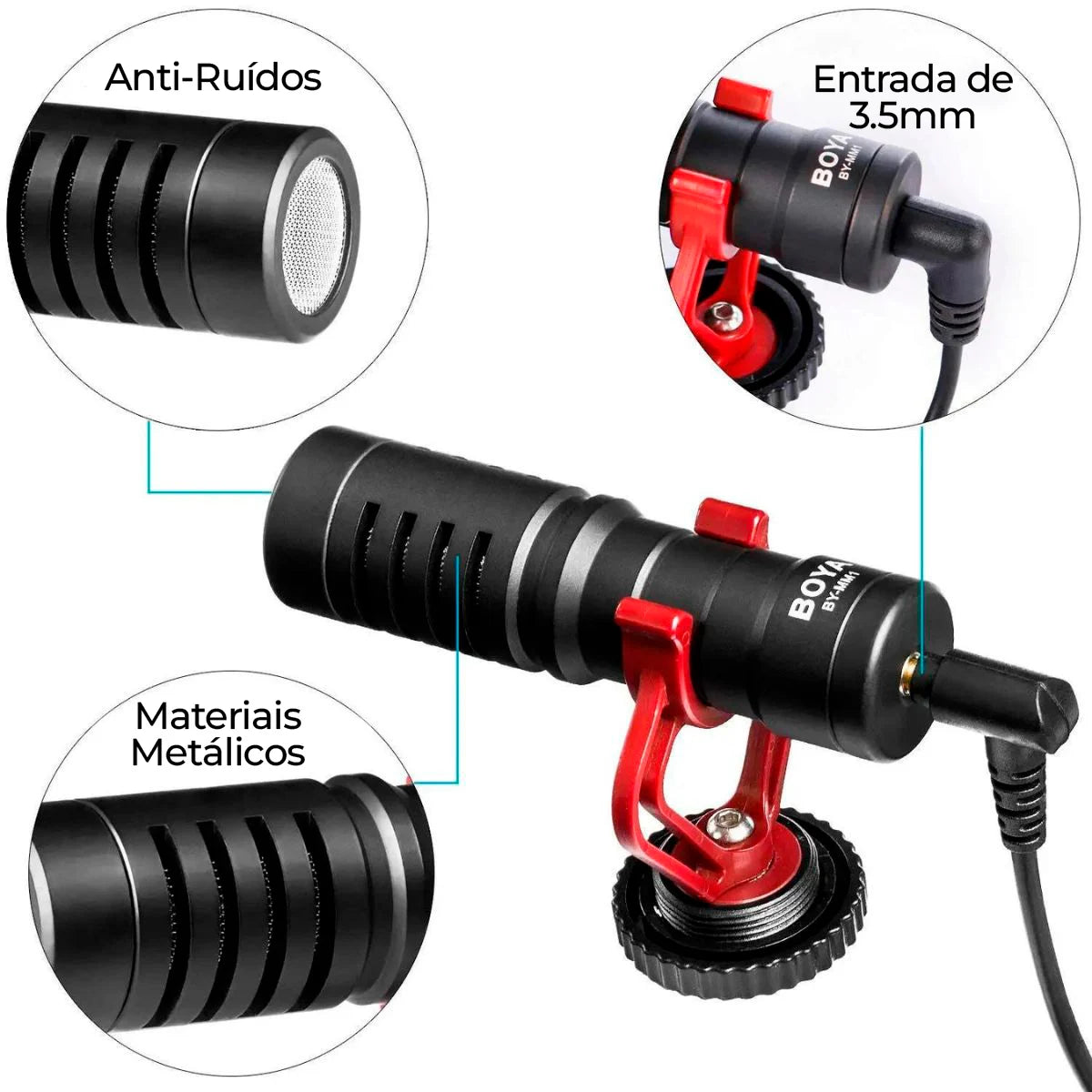 Microfone Boya BY-MM1 Condensador Cardioide Preto - Alta Qualidade para Gravação, Vlogging e Transmissão ao Vivo