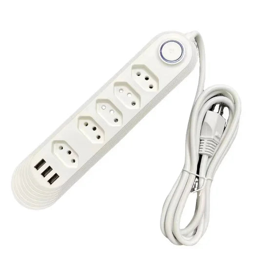 Extensão Elétrica 2m Com 3/4 Tomadas e 3 Entradas USB com Botão ENVIO RAPIDO PARA TODO O BRASIL